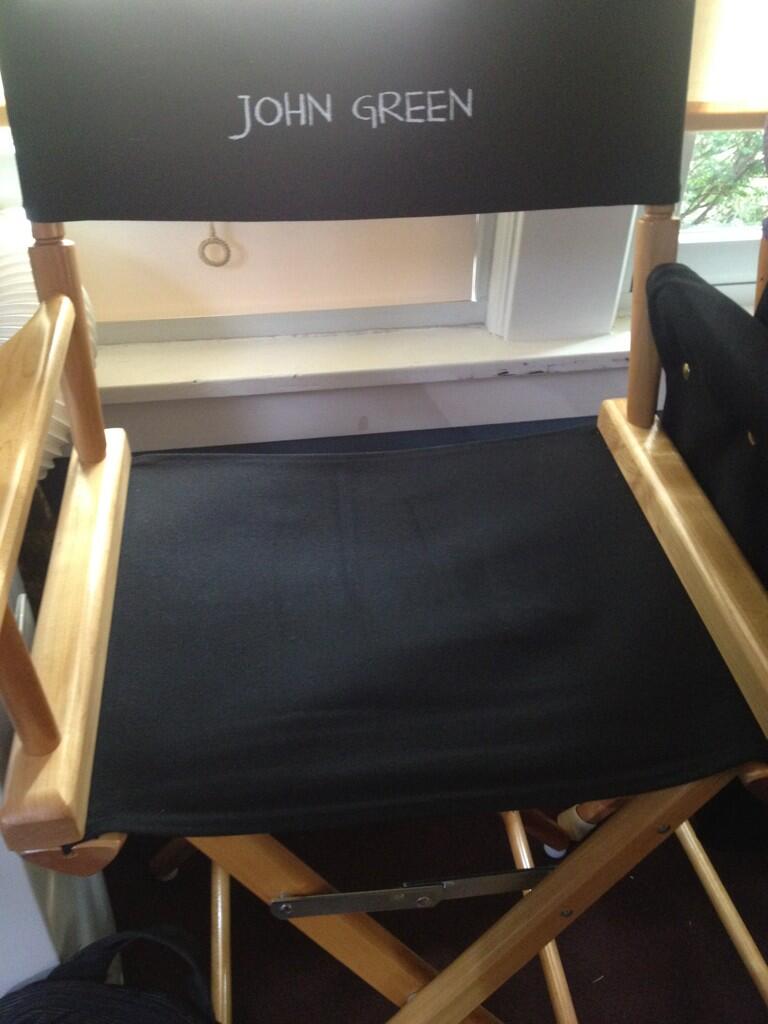 Day One of The Fault in Our Stars shooting has wrapped and author John Green, on set for the first week of filming is having an amazing time. He's tweeting pictures of his own 'director's chair' emblazoned with his name and sharing that he had a good cry with "Shai" and Laura Dern.